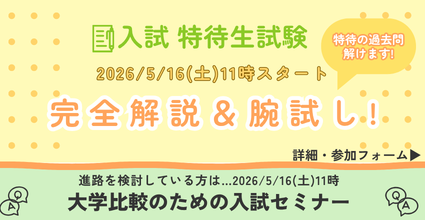- 2026/04/10 入試情報 特待生試験腕試し&大学比較のための入試セミナーのご紹介【5月14日受付締切】