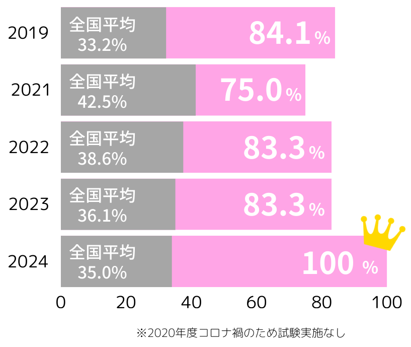 本校では毎年、全国平均を大きく上回る合格率を誇っています!