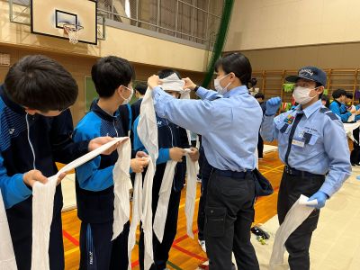 ◇三角巾を使用した止血や固定をレクチャー🤕