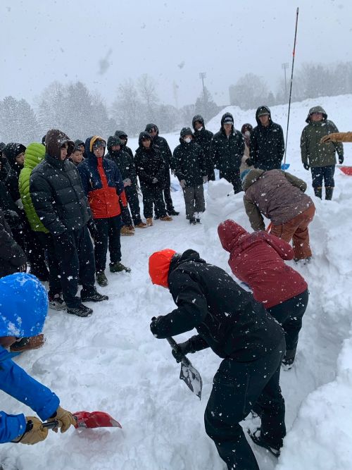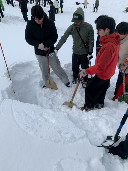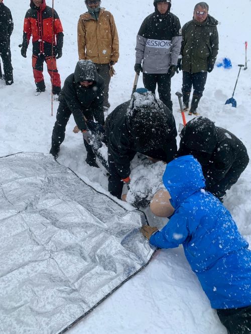 当日は山岳ガイドの方から、雪崩の仕組みや埋没者の救出方法について、直接ご指導をいただきました。