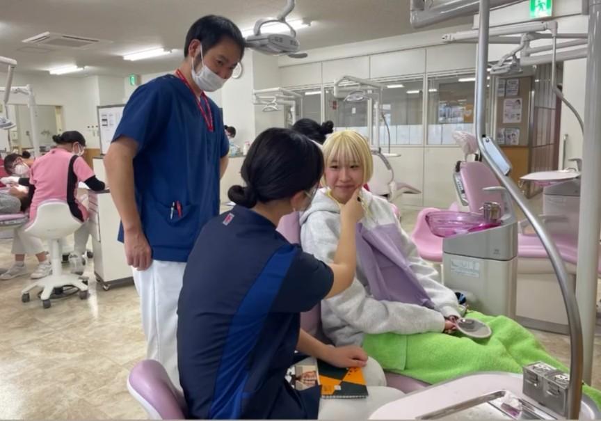 普段は学生同士で“患者役”と“歯科衛生士役”に分かれて、実践的に学びますが、