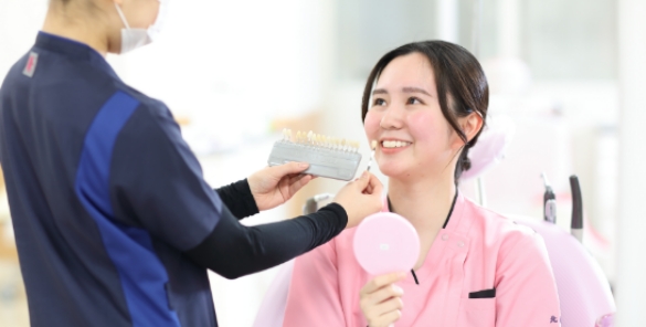 注目される審美歯科分野に関する授業を通して、患者さんとの間に立ち、治療に寄り添える審美歯科の知識を持った歯科衛生士を目指します。2025年度より新たにリップアートメイクの学びをいち早く取り入れています。