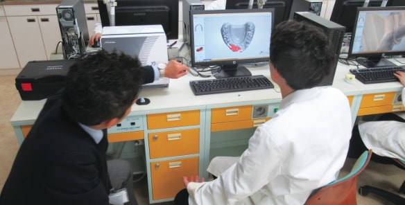 コンピューターを使って歯の設計を行うCAD/CAM。 最近ではCAD/CAMのプログラマーとしての求人も増えているので、学生のうちから操作方法をマスターしています。