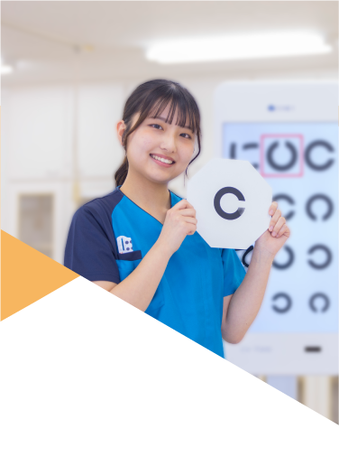 Yoshidaでは、入学後4月から学内学習がスタート。知識・スキルが定着してきたら、姉妹学科の学生を対象に眼科検診を実施します。