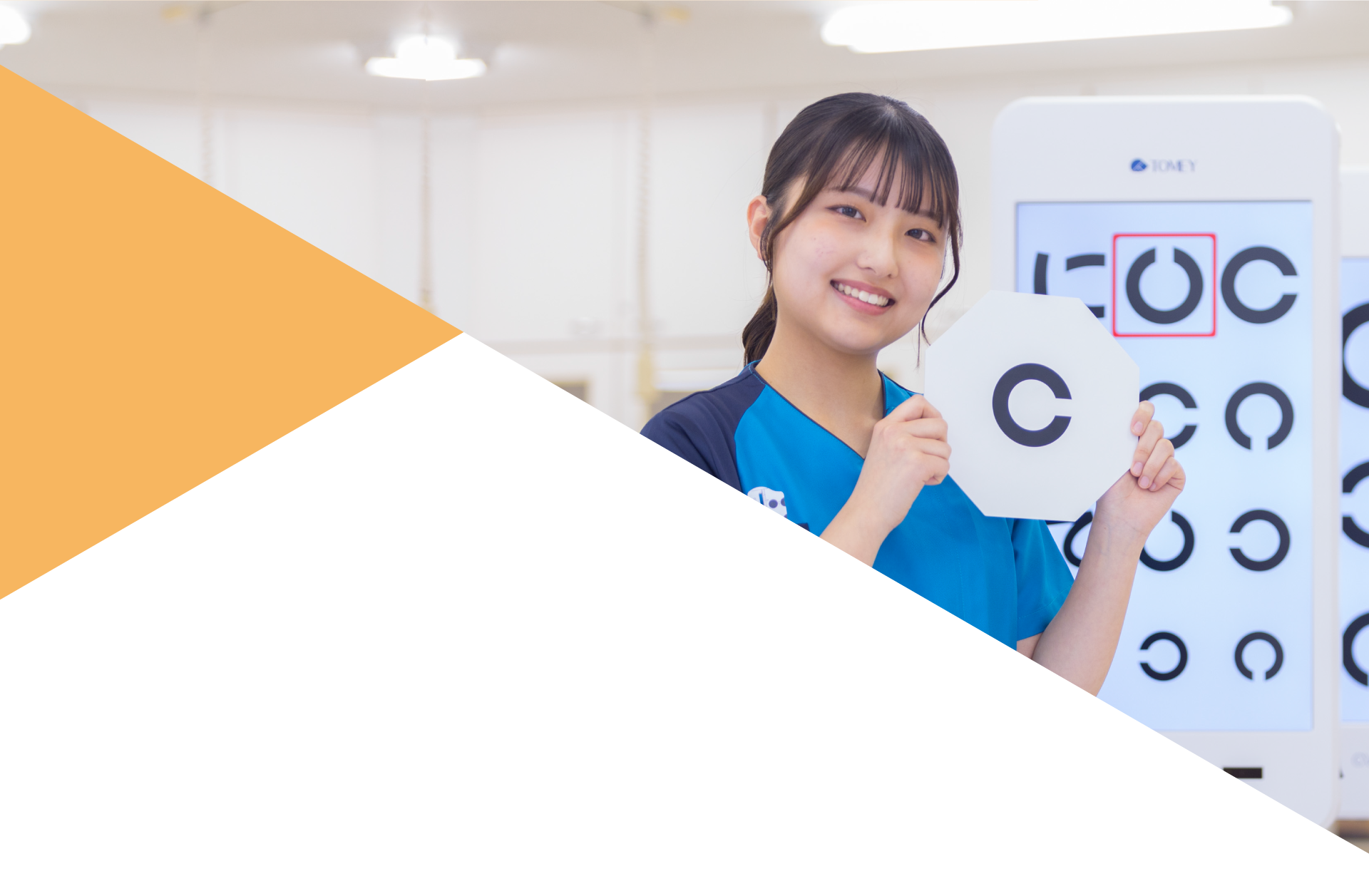 Yoshidaでは、入学後4月から学内学習がスタート。知識・スキルが定着してきたら、姉妹学科の学生を対象に眼科検診を実施します。